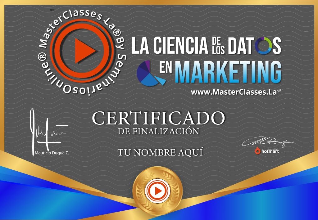 ¡Descubre cómo dominar la ciencia de los datos en marketing con este MasterClass! Aprenderás a interpretar los datos de tus campañas y los patrones de consumo de tus clientes, generando resultados sorprendentes. Desarrollarás modelos predictivos para identificar a tu cliente ideal y conectar con sus necesidades. Además, aprenderás a crear mejores campañas de marketing y comprenderás los factores determinantes que impulsan las compras. Obtén el certificado avalado por Hotmart y Seminarios Online. ¡No te quedes sin esta oportunidad!