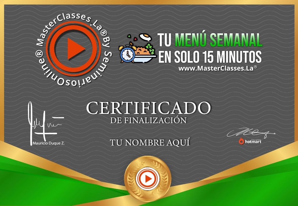 ¿Te gusta cocinar pero no tienes tiempo? Con el MasterClass «Tu Menú Semanal en Solo 15 Minutos» aprenderás a tener tus comidas listas en menos de 15 minutos. Descubre cómo simplificar el tiempo en la cocina, prepara tu semana de manera eficiente y ahorra dinero en el mercado. Con recetas saludables y sencillas, este curso te ayudará a desarrollar hábitos saludables y organización. ¡Ahorra tiempo y dinero mientras mejoras tus hábitos alimenticios!